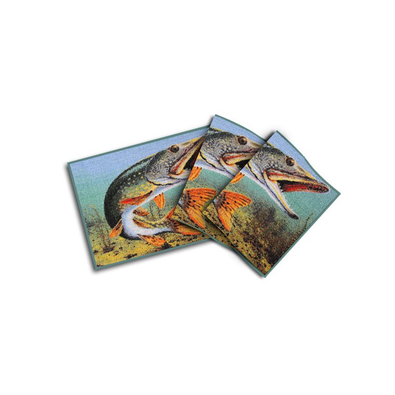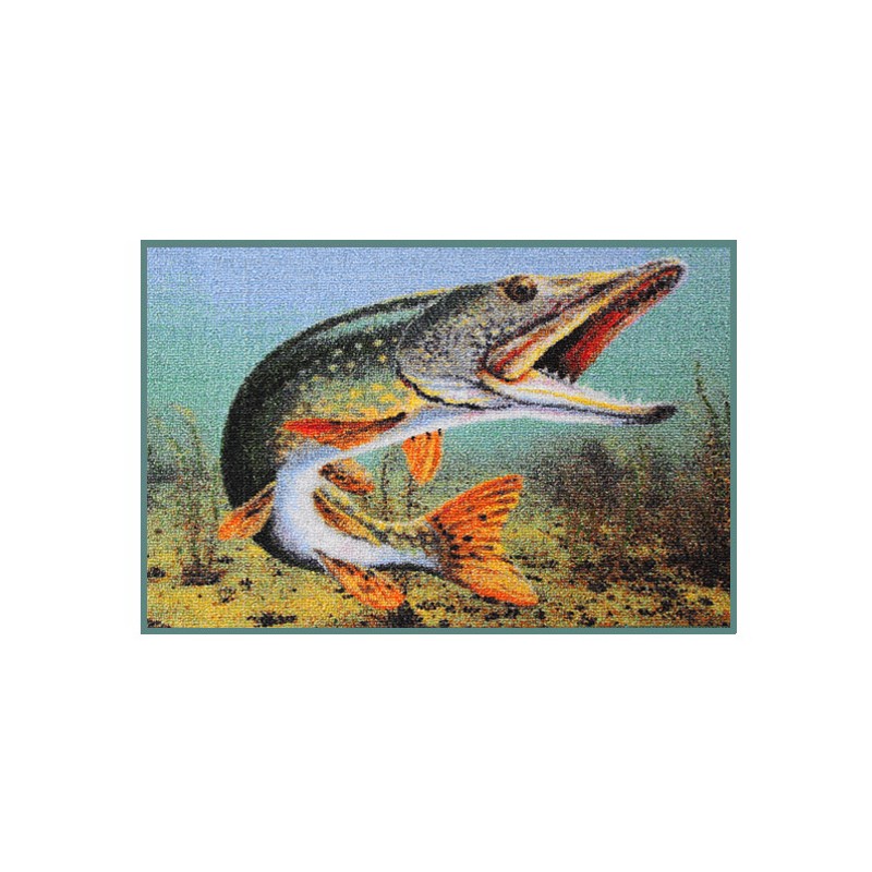 Excelentní rohož s výrazným, plnobarevným 3D motivem štiky plovoucí pod vodní hladinou. Určitě potěší každého rybáře.Tato rohož je vyrobena z odolného materiálu, okraj je obšitý tmavě zeleným šitím a ze spodní části je ošetřena latexovou vrstvou. Rozměr 60x40 cm je velmi kompaktní a hodí se před všechny vstupní dveře. Ukažte návštěvě už u vchodu kdo je doma pánem :)