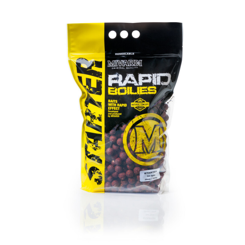 Vysoce atraktivní boilies, vyrobené z dobře stravitelných komponent, ptačích zobů, rybích extraktů a skutečných vajec. Vyznačuje se poctivým, naturálním vzhledem a bohatou strukturou. Neobsahuje žádná barviva ani umělá pojiva či jiné náhražky. Velmi dobře pracuje i ve studené vodě. Ihned po nahození se začíná pomalu rozpouštět a uvolňovat drobné částečky. Přináší větší počet záběrů při kratších vycházkách. Zároveň je velmi vhodné pro masivní pravidelné vnadění, když potřebujete na lovném místě udržet větší množství kaprů. Velkým trumfem boilies STARTER je jeho mimořádně výhodná cena. Toto boilies je dostupné ve skvěle vyladěné osvědčené příchuti Monster & Halibut, ve sladké verzi Fruit Bomb tvořené osvědčeným mixem účinných ovocných esencí a neodolatelně pikantní vůní Hot spice, která během dlouhého testování dosahovala neskutečných úlovků kaprů.