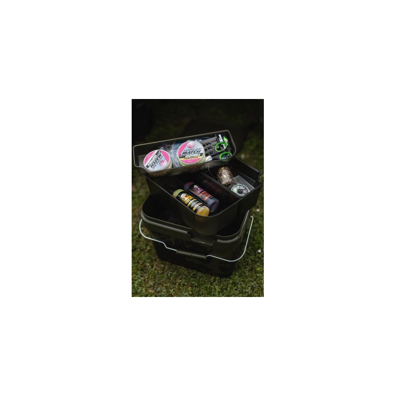 Nakonec je to vše uloženo v kbelíku Korda dark kamo 10L a jelikož jde o modulární systém, všechny komponenty se efektivně a přesně vejdou do kbelíku pro snadnou přepravu a skladování.