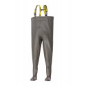 Prémiové broďáky vyrobené z prvotřídního PVC s odolnou polyesterovou podšívkou — navržené tak, aby obstály i v těch nejnáročnějších podmínkách a nabídly maximální životnost. Materiál je měkký, mírně pružný a mimořádně pohodlný, což zajišťuje maximální volnost pohybu. Robustní boty jsou vybaveny protiskluzovou podrážkou a speciálně tvarovanou patou s hlubokými výstupky pro snadné a rychlé vyzouvání. Všechny švy jsou pečlivě zatavené a zajišťují 100% vodotěsnost. Zesílené oblasti na kolenou poskytují dodatečnou ochranu bez objemných vnějších záplat, které by se mohly časem uvolnit. Tyto broďáky spojují funkčnost a komfort — nechybí nastavitelná stahovací šňůrka, vodotěsná vnitřní kapsa s utěsněným zipem a pohodlné kšandy s tkaným logem. Dodávají se v kvalitním přepravním obalu s pevnými popruhy odolnými vůči vlhkosti i nečistotám — připraveny vyrazit kamkoli, kam vás zavede vaše dobrodružství.