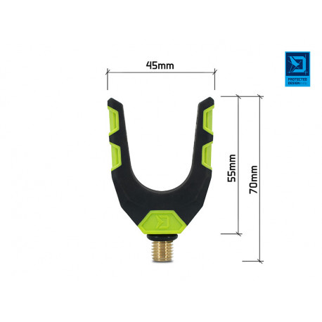 Zadní držák prutu tvaru U, navržený v barvách inovativní feederové série Delphin Reaxe. Držák se vyznačuje excelentním zpracováním a vyniká svojí robustností a odolností. Speciálně navržený tvar umožňuje uložení prutů s různými průměry rukojetí. Povrch je potažen pogumovaným materiálem, který je extra šetrný k povrchu prutu a chrání jej před poškozením. Držák je vyroben z odolných materiálů, takže se snadno nepoškodí a nepoškrábe. Univerzální závit umožňuje uchycení na všechna standardní ramena, stojany a vidličky. Na závitové části se nachází gumová podložka, která zamezuje otáčení držáku.