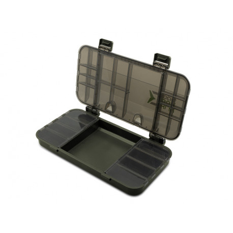 Vnitřek boxu je vybaven množstvím uzavíratelných přihrádek různých rozměrů, čímž poskytují ideální prostor pro nejrůznější bižuterii. Díky průhlednému provedení krytů jednotlivých přihrádek budete mít vždy přehled o tom co se uvnitř nachází a potřebnou komponentu tak najdete během krátké chvíle. K uzavření organizéru poslouží pevné plastové klipy, které se postarají o to, aby vše zůstalo na svém místě.