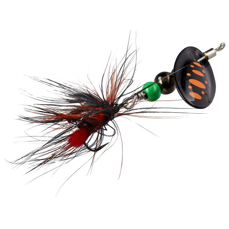 Rotačka určená pro lov pstruhů, tloušťů nebo okounů. Díky své speciální konstrukci křidélka je dokonale přizpůsobena pro lov v potocích a řekách. I v silném proudu nebo nepravidelných peřejích a vírech máte jistotu, že se rotačka bezproblémově točí. Zakončení obratlíkem pro minimalizaci kroucení vlasce a možnost přímého navázaní na vlasec bez nutnosti používat separátní obratlík. Trojháček je připojen pomocí kroužku. Lze jej tedy snadno vyměnit například za jednoháček. Peříčka pro dodatečnou atraktivitu. Velikost 2, váha 3,90 g.