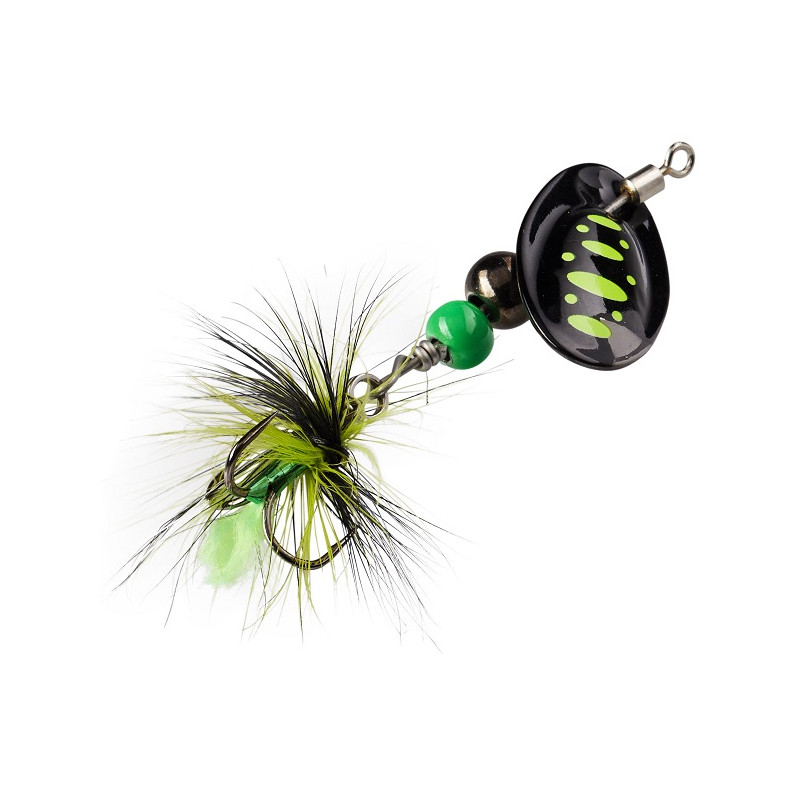 Rotačka určená pro lov pstruhů, tloušťů nebo okounů. Díky své speciální konstrukci křidélka je dokonale přizpůsobena pro lov v potocích a řekách. I v silném proudu nebo nepravidelných peřejích a vírech máte jistotu, že se rotačka bezproblémově točí. Zakončení obratlíkem pro minimalizaci kroucení vlasce a možnost přímého navázaní na vlasec bez nutnosti používat separátní obratlík. Trojháček je připojen pomocí kroužku. Lze jej tedy snadno vyměnit například za jednoháček. Peříčka pro dodatečnou atraktivitu.