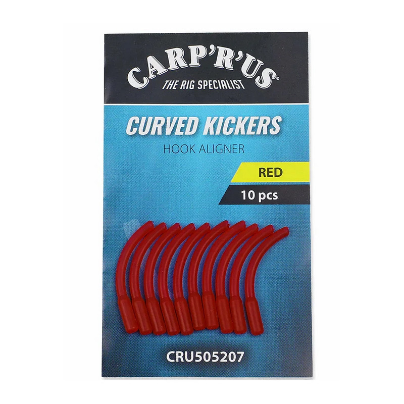 Carp'R'Us Rovnátko Curved Kickers Large 10 ks je tvarované tak, aby prodloužilo délku ramínka háčku, vytvořilo perfektní oblouk a háček se při záběru vždy přetáčel hrotem dolů. Díky tomu zlepšíte účinnost zaseknutí a získáte větší jistotu i při opatrných dotecích. Rovnátka jsou ideální jak pro potápivé, tak i pro plovoucí nástrahy, takže je snadno začleníte do různých návazců.