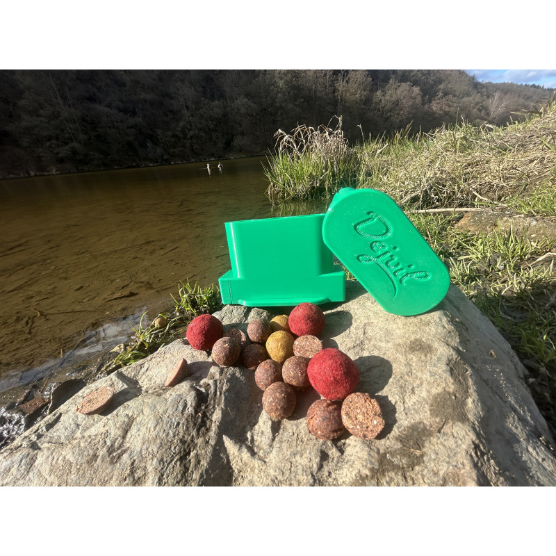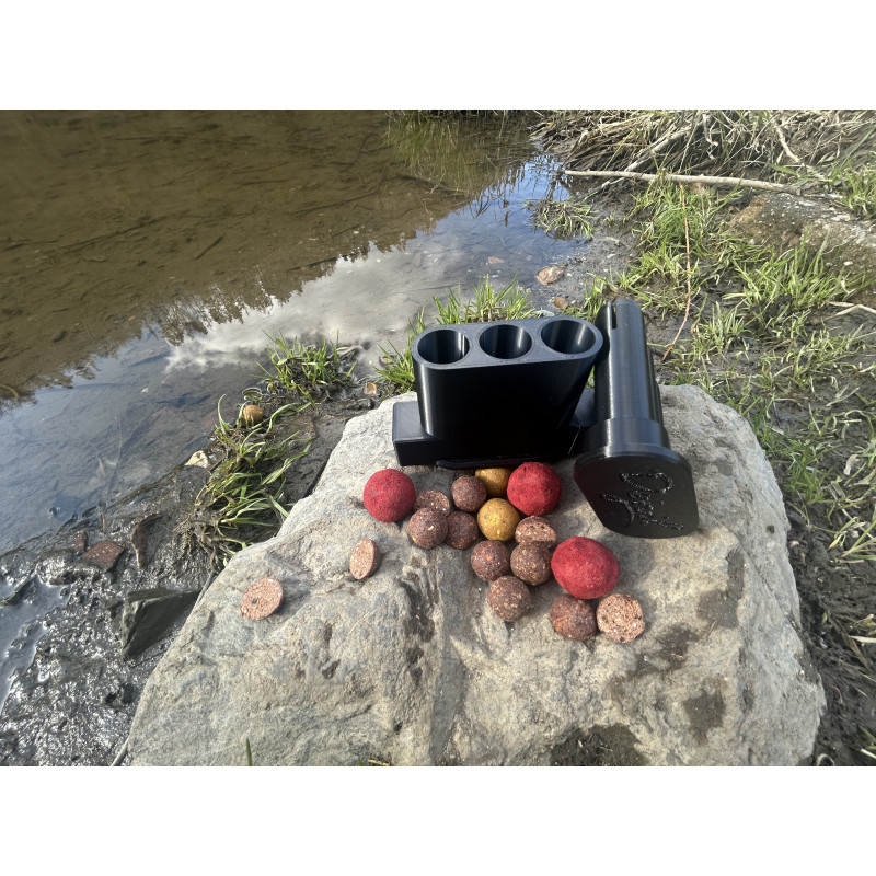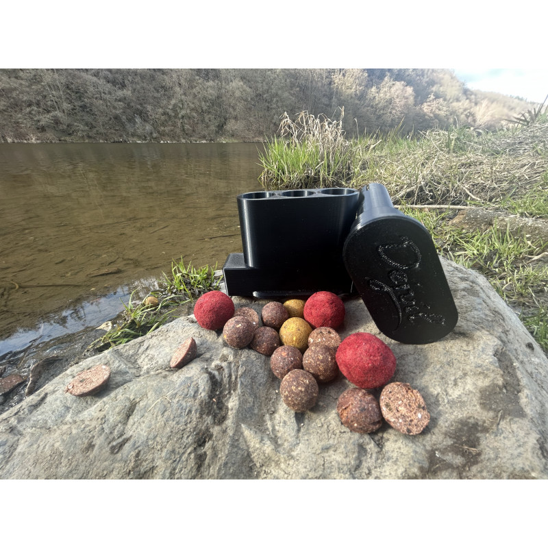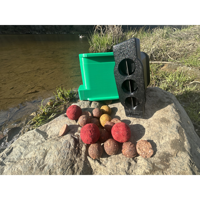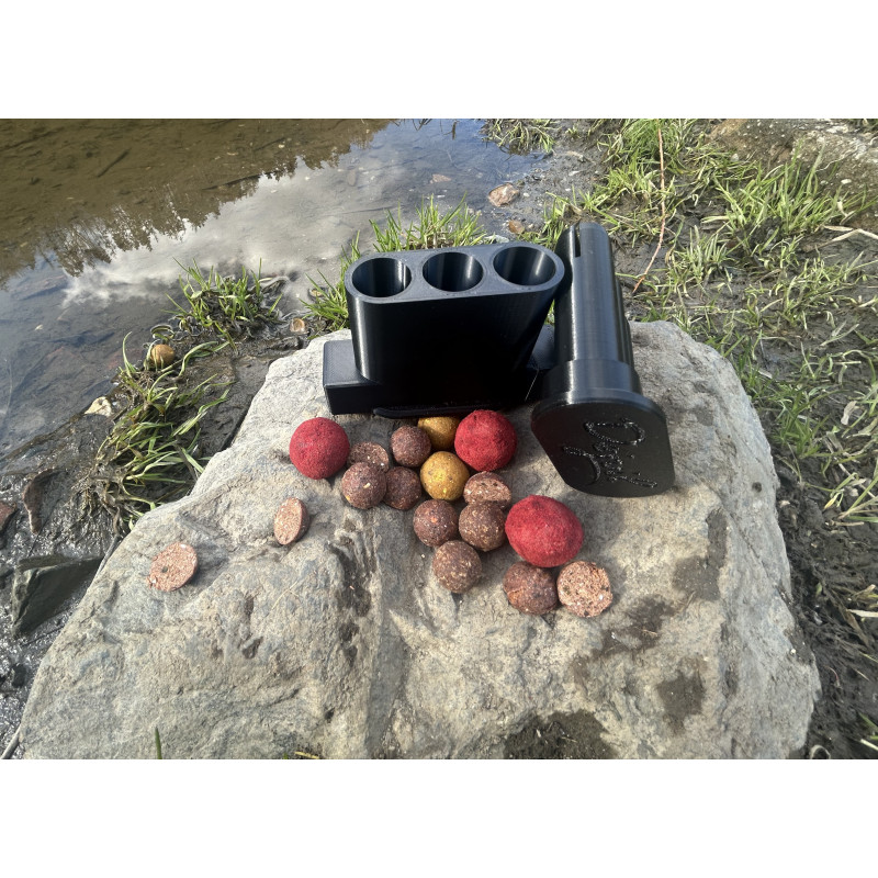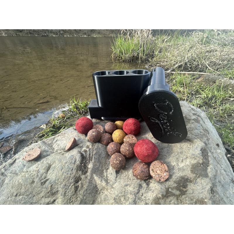 Použití produktu je velmi jednoduché. Do připravených otvorů vložte kuličky boilies v odpovídajícího průměru a zatlačte na protikus. Následně můžete pokračovat ve stejném postupu. Boilies vypadává do Vámi určené nádoby.
