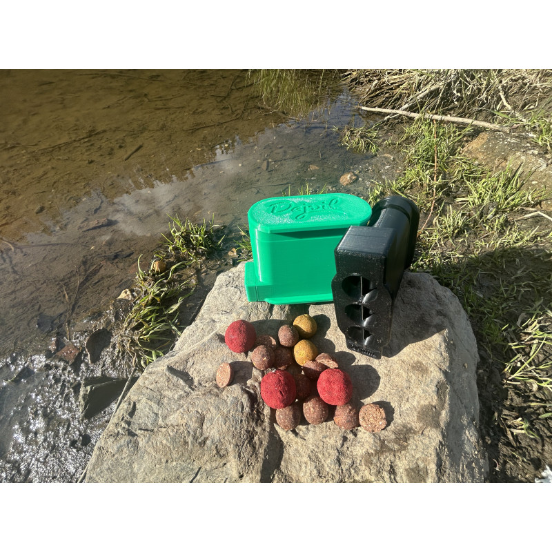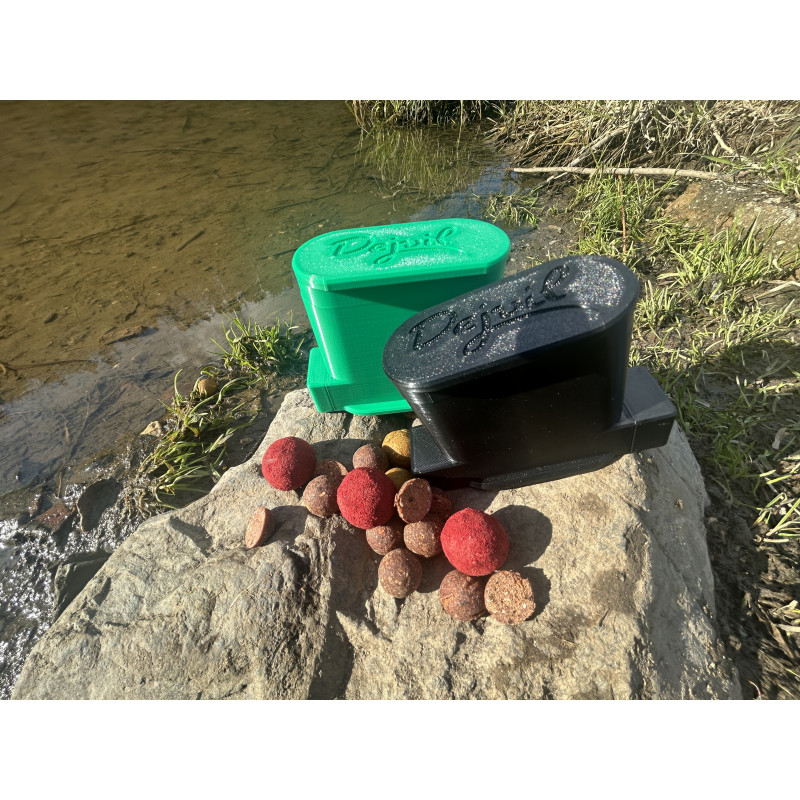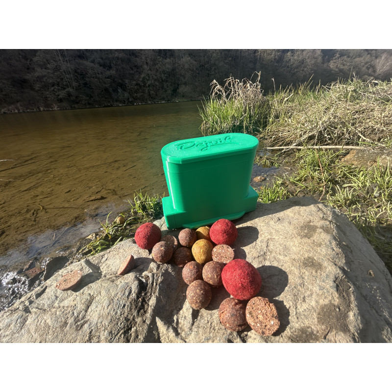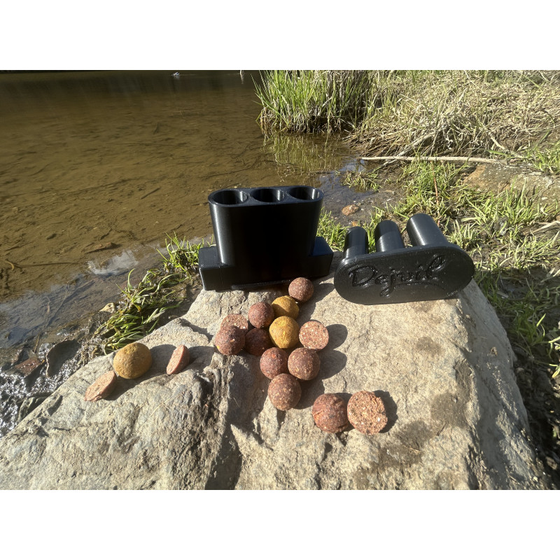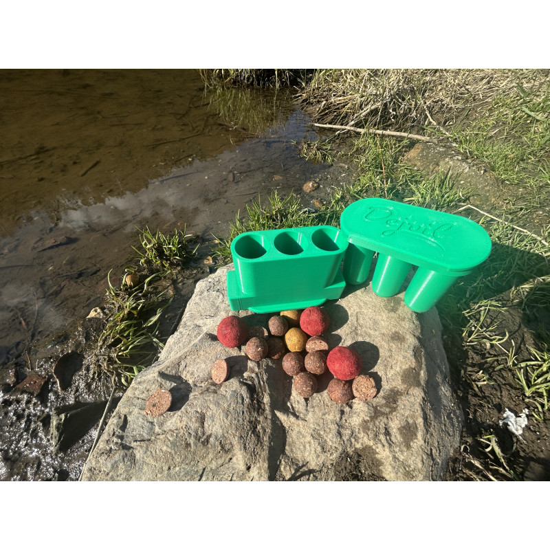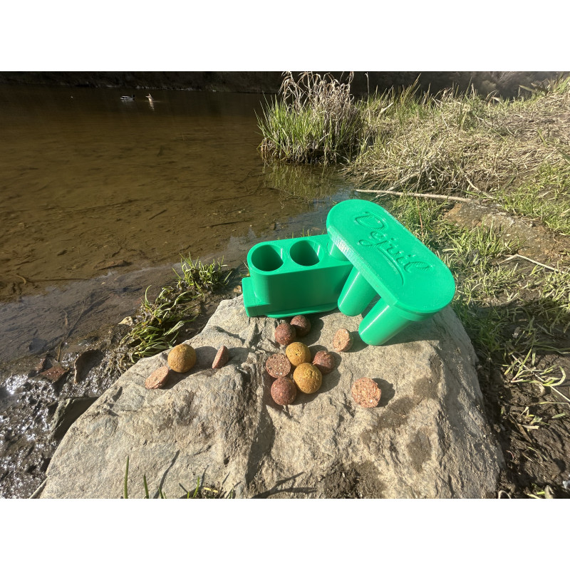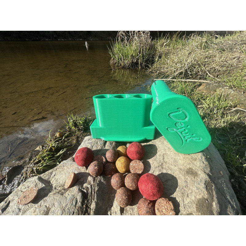 Použití produktu je velmi jednoduché. Do připravených otvorů vložte kuličky boilies v odpovídajícího průměru a zatlačte na protikus. Následně můžete pokračovat ve stejném postupu. Boilies vypadává do Vámi určené nádoby.
