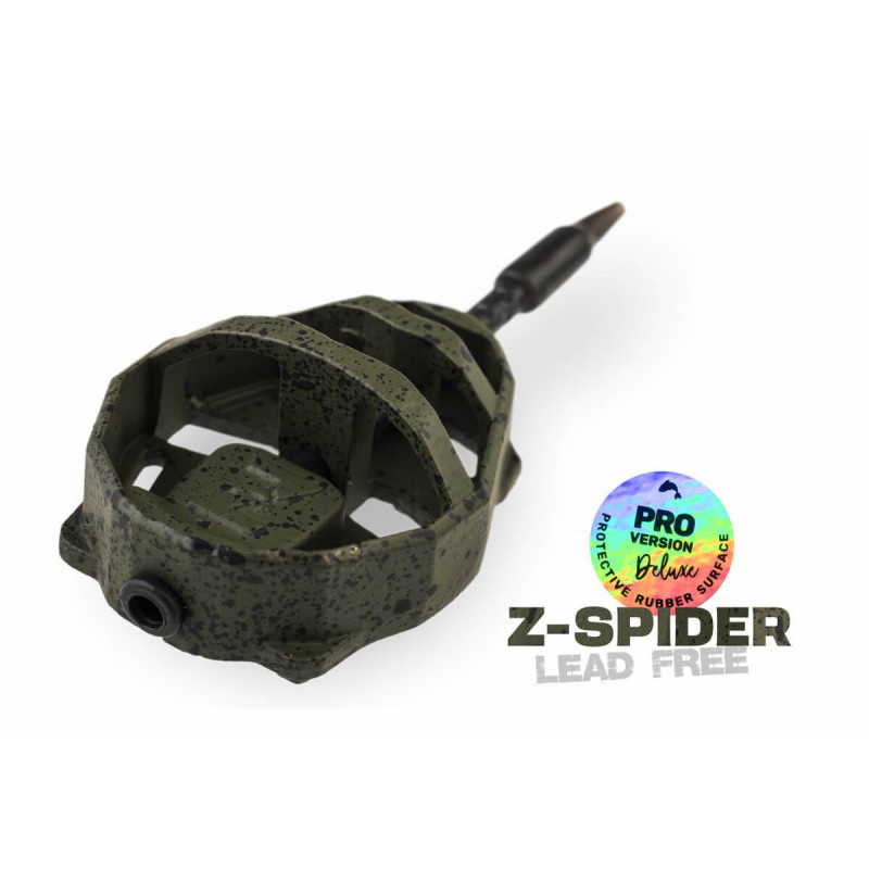 Krmítko Spider představuje novou generaci method feeder krmítek, která spojuje precizní zpracování, promyšlený design a maximální funkčnost. Na jejich vývoji se podílel tým zkušených specialistů značky ZFISH, díky čemuž vzniklo krmítko, které splňuje i ta nejvyšší očekávání moderního rybáře. Tvar Spidera zaručuje dokonalé vyvážení při nahazování a jisté dosednutí ke dnu vždy tou správnou stranou. Nově navržený nosný rám zajišťuje optimální uvolňování krmné směsi a zároveň chrání nástrahu během náhozu. Součástí konstrukce je speciální ploška pro přesné umístění nástrahy s háčkem, která zajistí, že vaše nástraha bude vždy v ideální pozici. Krmítka Spider umožňují rychlou výměnu zátěže díky vyjímatelné trubičce a otvoru na zadní straně. Stačí vysunout trubičku, uvolnit vlasec a vyměnit zátěž za jinou – bez nutnosti převazování celé sestavy. Krmítka jsou vyrobena z bezolovnatého materiálu v matně zeleném provedení s černými tečkami, které dokonale splyne s dnem a minimalizuje plašení ryb.