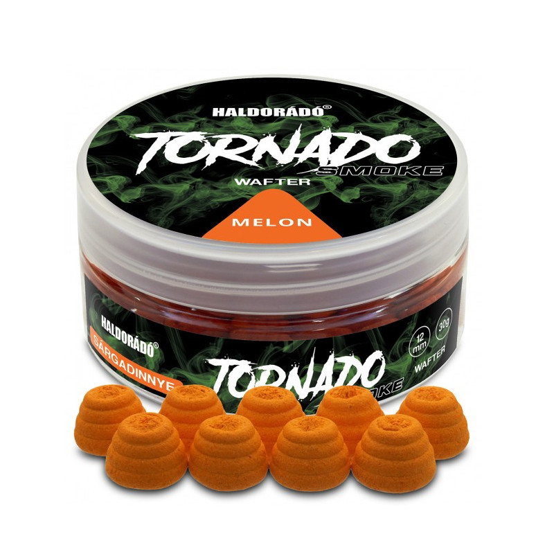 Haldorádo Tornado Wafter Smoke, která uvolňuje ve vodě barvu, tzv. kouřový efekt. Speciálně tvarované nástrahy wafter ve velikosti 12mm.
