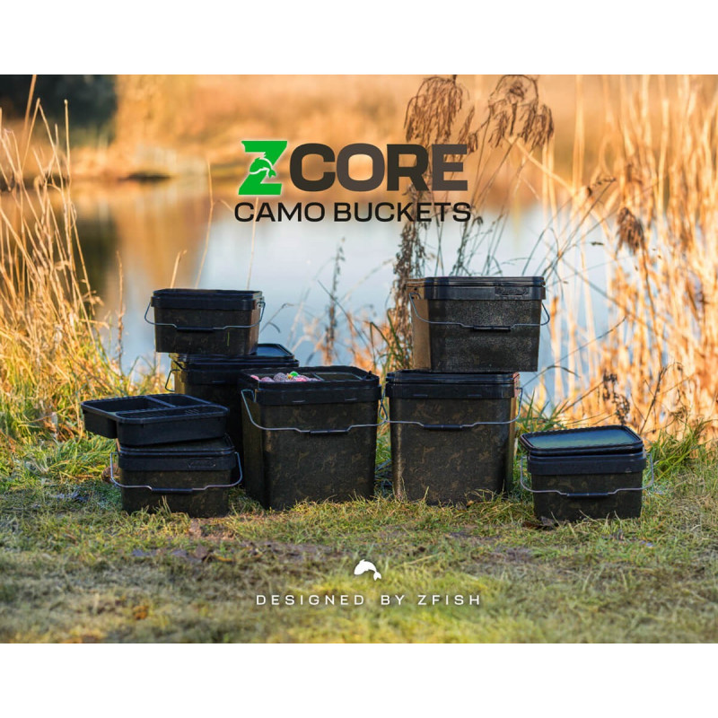 Rybářské kbelíky ZFISH Z-Core Camo Buckets jsou praktické, odolné a perfektně uzpůsobené potřebám moderních rybářů. Každý kbelík je vybaven pevným kovovým madlem pro pohodlné přenášení a stabilní manipulaci i při plném zatížení. Těsnící víko spolehlivě drží na svém místě, takže obsah zůstává chráněný proti vylití, znečištění i vysychání. Moderní design Z-Core Camo perfektně ladí s rybářskou výbavou a zároveň je nenápadný v přírodě.
