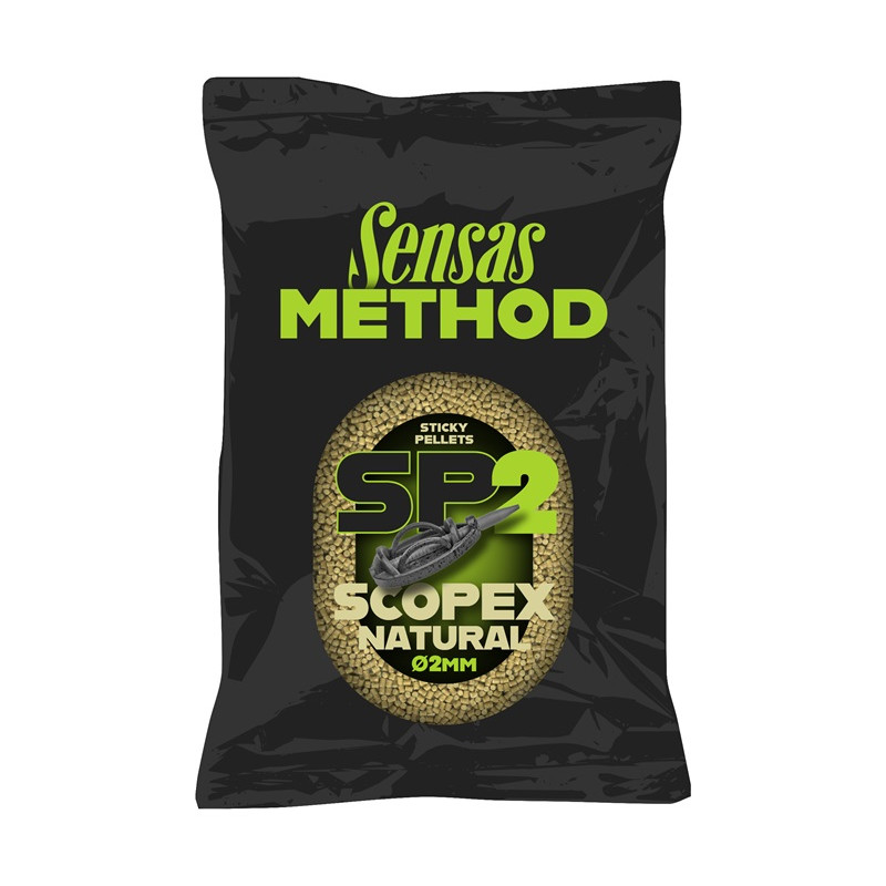 Lepivé pelety určené do method feederového krmítka. Na hlubší vodě je lze použít i do klasického krmítka. Jejich příprava je velmi jednoduchá. Stačí je smíchat s troškou vody a po chvilce začnou intenzivně lepit a jsou připravené k použití. Obsahují výběrové masové moučky, směs koření, výtažky z mořských živočichů, sladké stimulanty nebo výtažky ovoce a mořských živočichů. K atraktivitě přispívá i široká barevná škála. Velikost 2 mm. Příchuť: SCOPEX