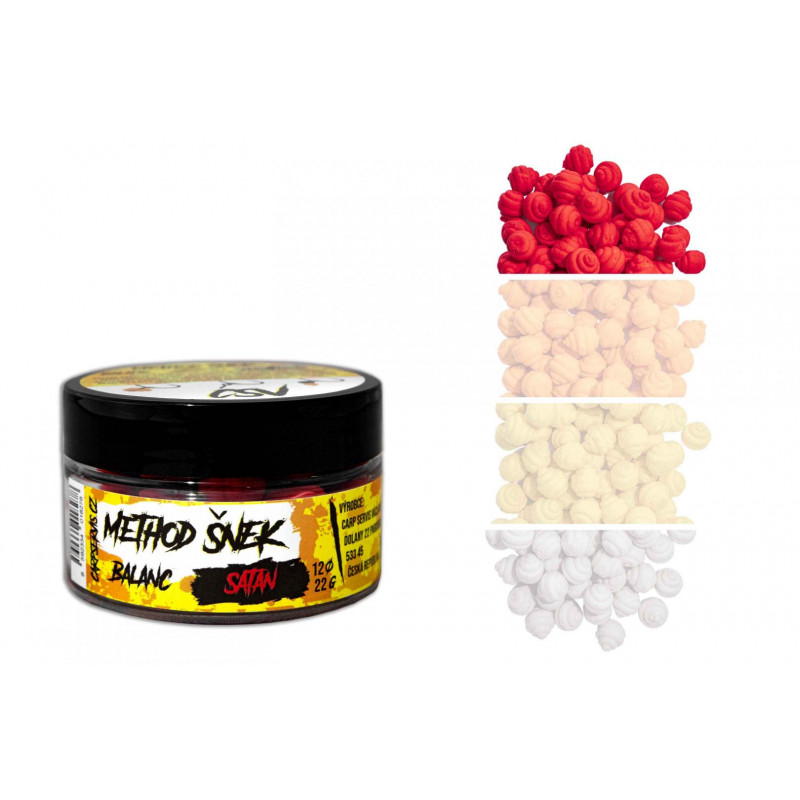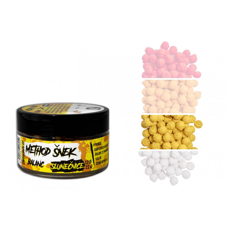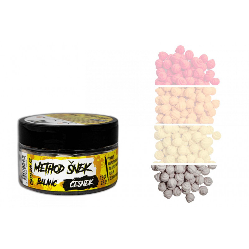 Method šnek balanc - přináší nejen klasické přednosti balanc nástrah, ale má i schopnost velmi intenzivního uvolňvování atraktorů a částečnou rozpustnost. Dalším atributem je inovativní tvar, který imituje přirozenou potravu různé druhy plžů, což je činí neodolatelnými pro většinu, i těch nejopatrnějších kaprovitých ryb. Nástrahu je možné dipovat pomocí Aroma Pop up nebo Aroma speciál od CSV. Aromatizační prostředky jsou nositelemidentických pachových silic, které jsou použity přímo v Method šnek balančních nástrahách. Vyrábí se v šesti variantách.