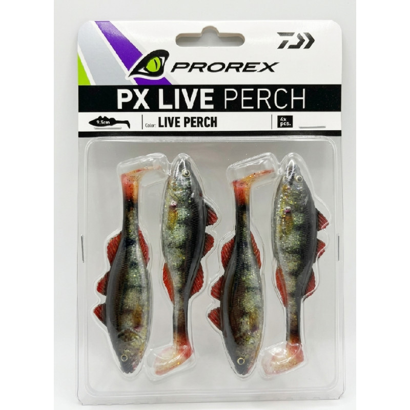 Prorex Live Perch nabízí superrealistickou imitaci okouna a díky dostupným živým potiskům vypadá téměř identicky jako skutečný okoun. Nástraha se pohybuje ve vodě s atraktivní akcí a častým klepáním lopatkovitého ocasu. Hřbetní ploutev byla rozdělena tak, aby bylo možné jigové háčky přesně umístit do prostoru podél hřbetu.