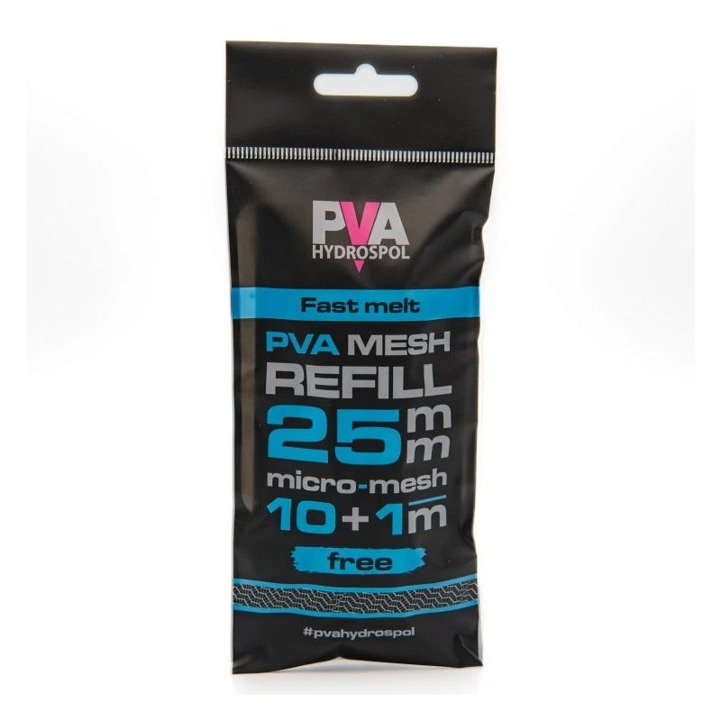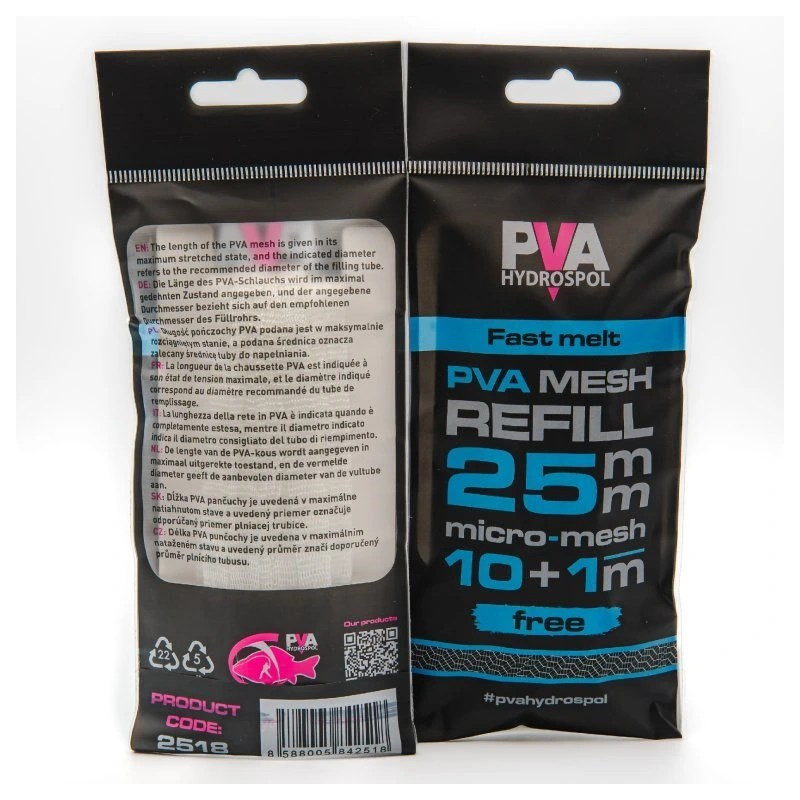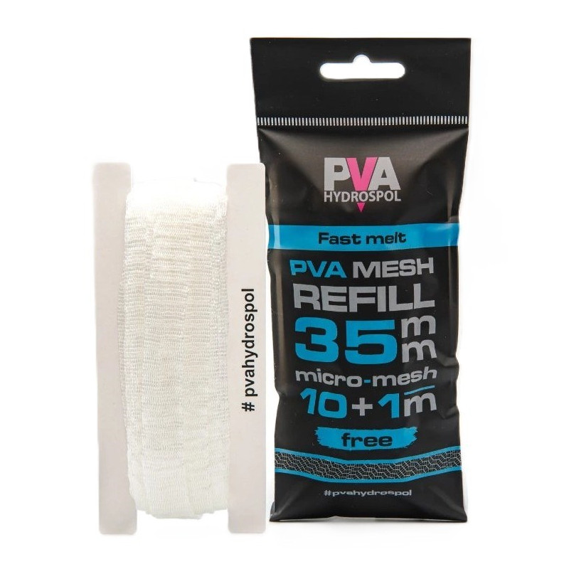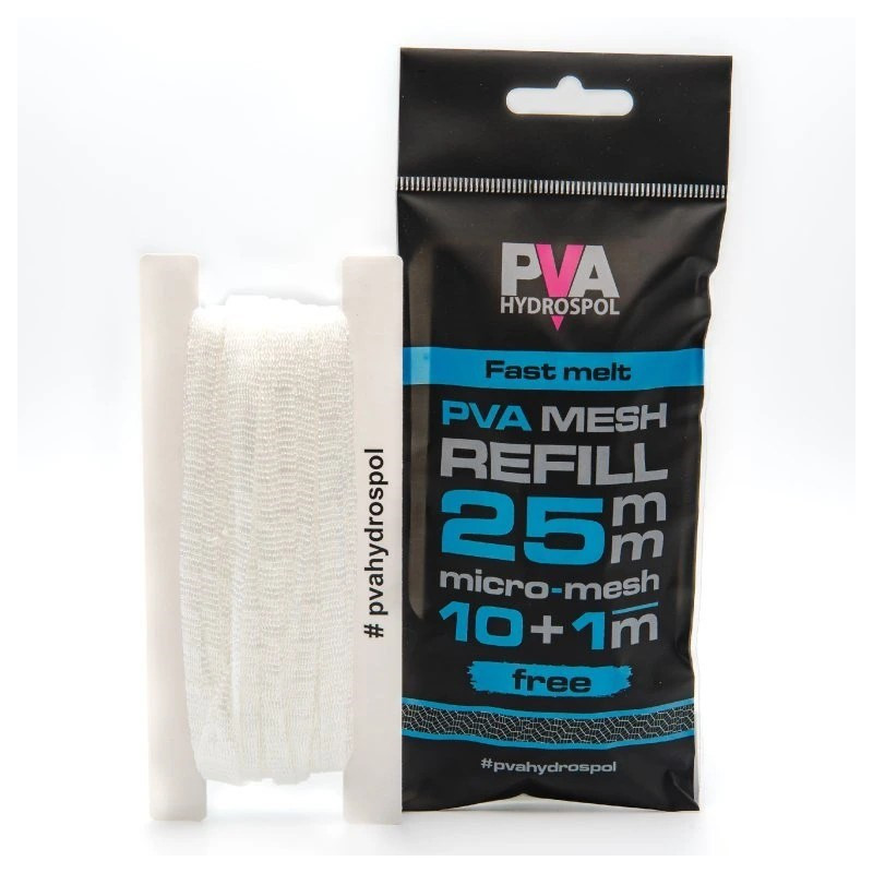 Rychlorozpustná náhradní PVA punčocha Hydrospol v balení 10 + 1 m zdarma je vyrobena z hustého micro-meshe z japonských PVA vláken pro pohodlné plnění a rychlou rozpustnost ve vodě.