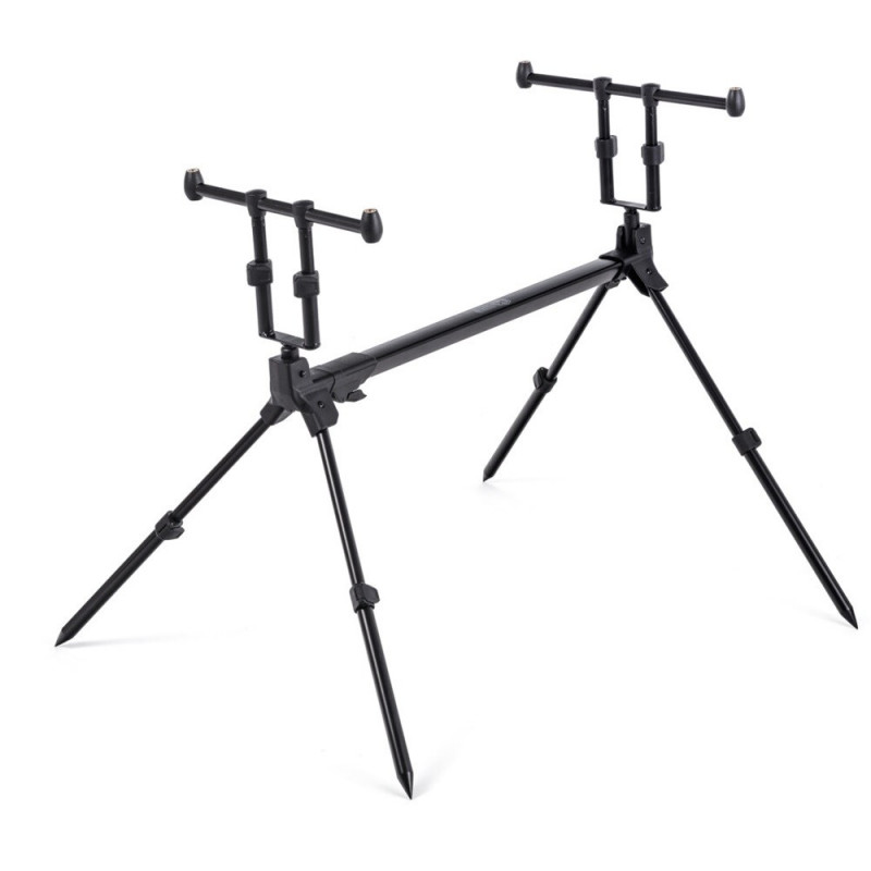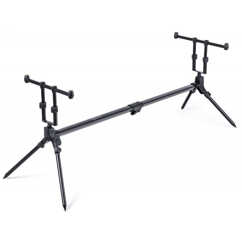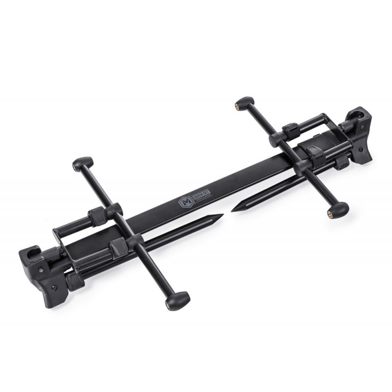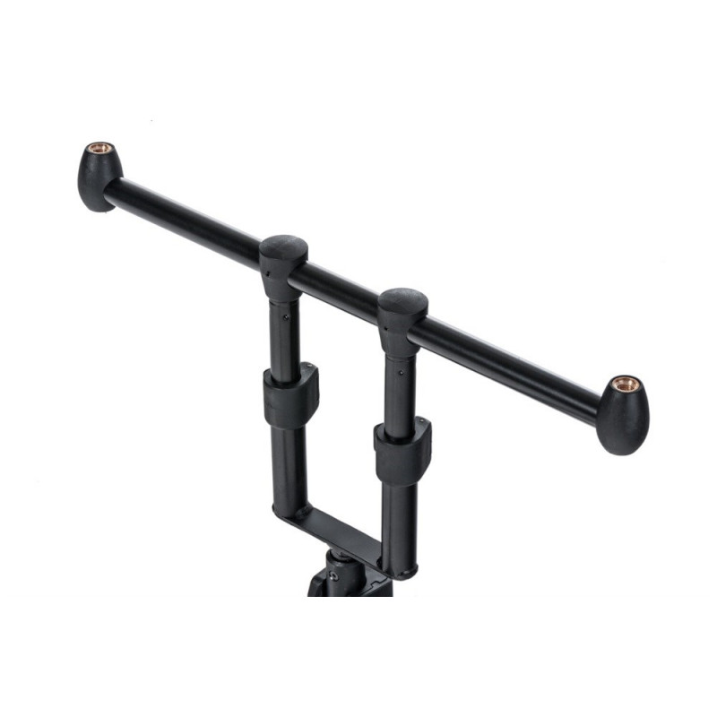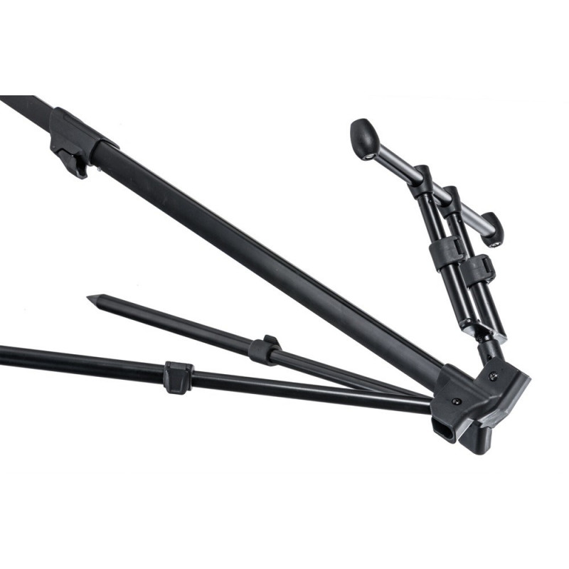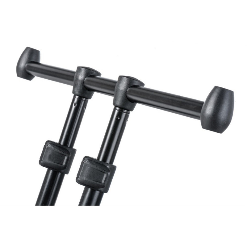 Nepotřebujete žádné šrouby. Rozložení všech částí, nastavení délky či vyklopení teleskopických noh je otázkou několika vteřin. Vše je řešeno unikátním systémem na zacvaknutí. Stojan je vybaven hrazdami na dva pruty s nastavitelnou výškou. Nastavit můžete i délku stojanu a samozřejmě i délku teleskopických noh. Stojan je ideální pro lov s krátkými stalkerovými pruty. V případě potřeby je možné stojan osadit hrazdami na tři pruty, dostupnými samostatně.