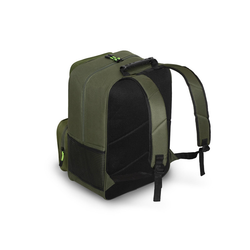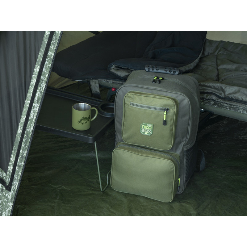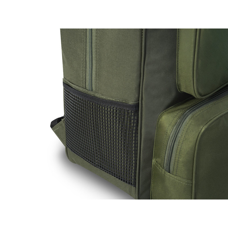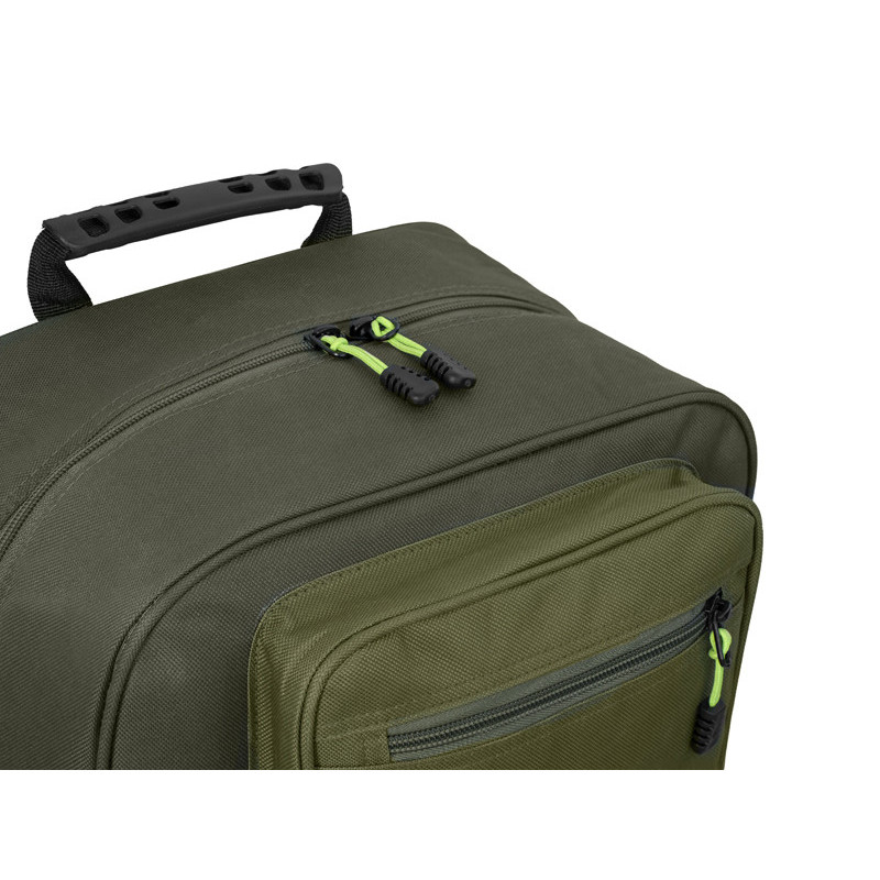 Důmyslně promyšlené rozložení dělí prostor na velkou hlavní komoru a dvě přední kapsy. Hlavní část nabízí dostatek místa pro oblečení i rybářské příslušenství a navíc je vybavena vyztuženou přepážkou.