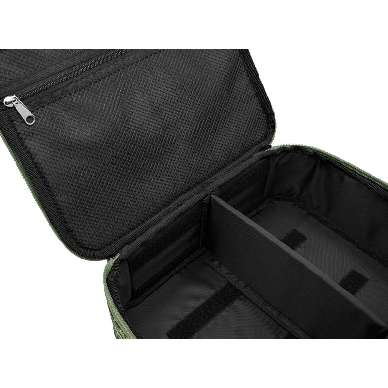 Polstrované pouzdro na navijáky, ve kterém budou vaše poklady v naprostém bezpečí. Toto pouzdro je určeno buď pro dva menší navijáky, kdy je posouvatelná přepážka ve středu, nebo pro jeden velkokapacitní naviják, kdy je přepážka u kraje a odděluje naviják a náhradní cívky. Díky posouvatelné přihrádce dostáváte neomezené možnosti při tvorbě a využití vnitřního prostoru. Součástí této příruční tašky je samozřejmě madlo do ruky a vnitřní síťovaná kapsa.