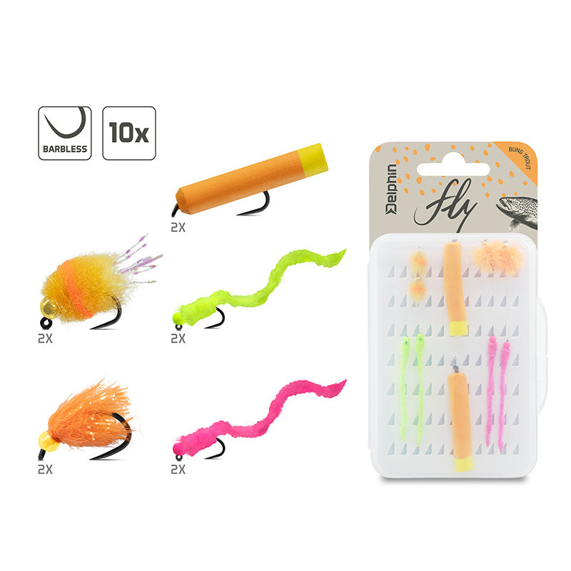 Sada umělých mušek, které jsou určeny pro statický lov pomocí plovoucích šňůr, kdy ryby neochotně reagují na pohyblivé nástrahy. Sada obsahuje deset mušek v pěti ověřených vzorech napodobujících jikry a červy, které jsou přirozenou potravou lososovitých ryb. Díky výrazným barvám skvěle fungují na čerstvě nasazené ryby, nejednou však oklamou i zvědavou divokou rybu.